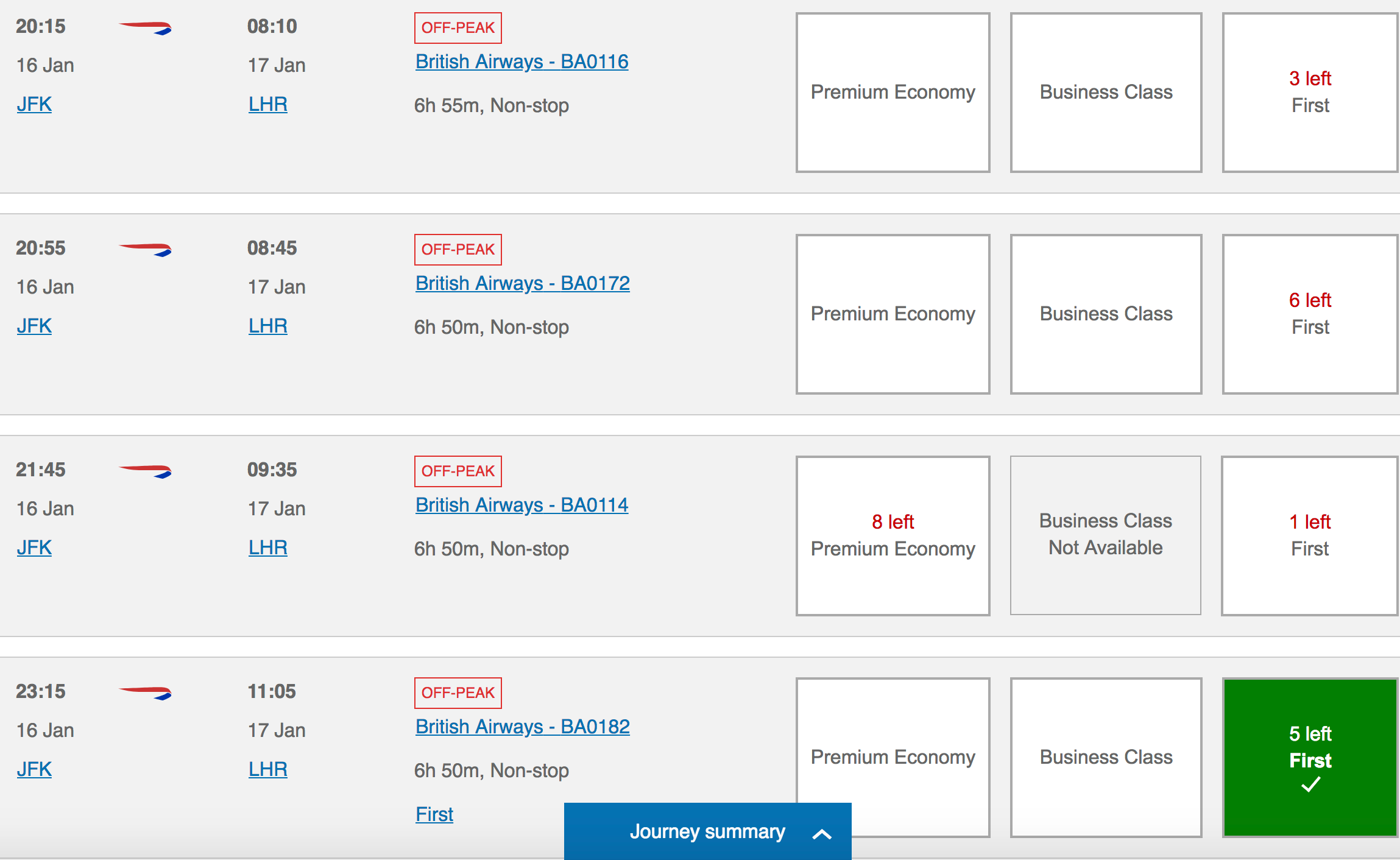 British Airways might not offer the world's most refined first class product, but it's hard to argue with this kind of availability.