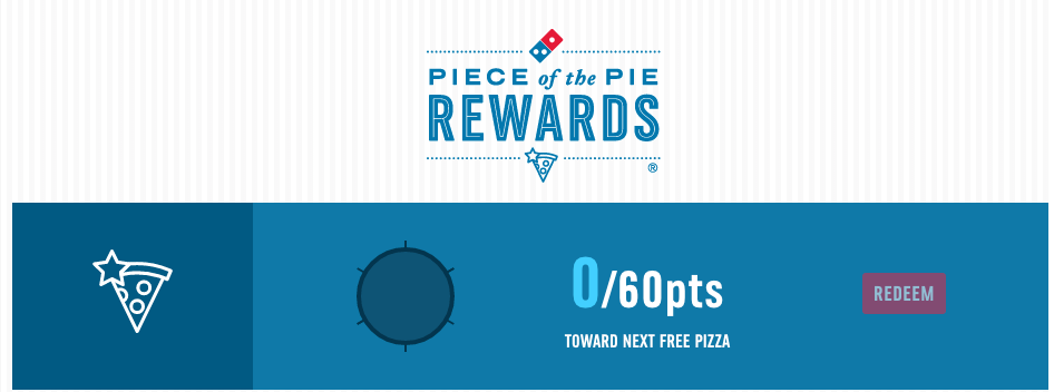 Every time you place an order of at least $10 with Domino's (tips and donations excluded), you'll earn 10 points in the chain's Piece of the Pie Rewards program. You can only earn points on one order per calendar day. It then takes 60 points to earn a free medium, two-topping pizza, but you don't have to redeem points once you get to 60. You can continue earning points and cash out for multiple free pizzas if you wish. However, points expire after 180 days of account inactivity.