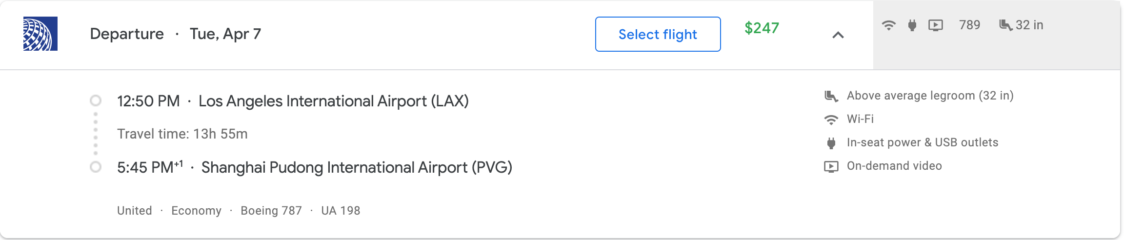 Now, all three legacy U.S. airlines — Delta, United and American — award miles based on the cost of your ticket before taxes and fees and don't factor in distance (with the exception of elite status, but more on that in a moment). This means that you'll earn roughly the same amount of miles flying these two United flights between Los Angeles (LAX) and Shanghai (PVG) or between Chicago-O'Hare (ORD) and Washington-Reagan (DCA), even though one flight is 12 hours longer and covers over ten times the distance.