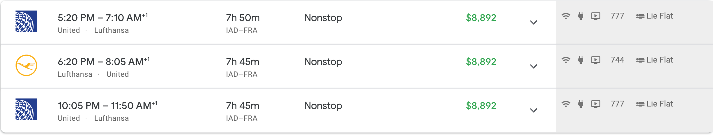 Now, all that matters is the cost of your ticket. One-way business class flights from DC to Frankfurt routinely price out at ~$8,800, with the return tickets costing closer to $5,300. Add that up, and you'll be spending a little over $28,000 on two round-trip tickets. Since taxes and fees are minimal on this route, this means you'll earn well over 24,000 Premier Qualifying Points and qualify for United's top-tier, Premier 1K status with the exact same trips that would have only earned you Silver a year before.