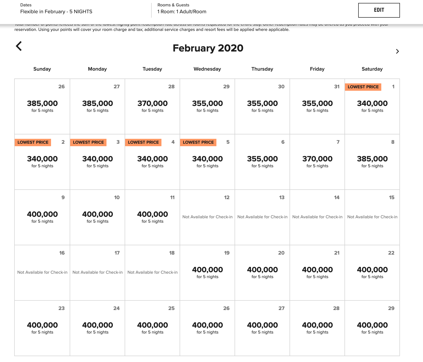 Hilton has been using this pricing for a while, though instead of using the peak and off-peak designation, Hilton publishes a maximum and minimum price for each hotel, creating a range of possible rates. Marriott launched peak and off-peak pricing this year (after giving us plenty of advance warning), and Hyatt recently announced it would be making a similar change in March 2020.