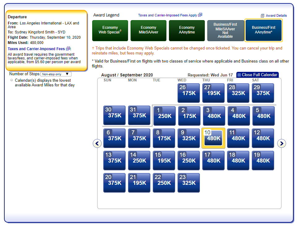 While there are some award sales available on select routes for limited times, most people associated dynamic pricing with the extreme upper end, such as American Airlines now charging 480,000 miles for a one-way business class award between the U.S. and Australia.