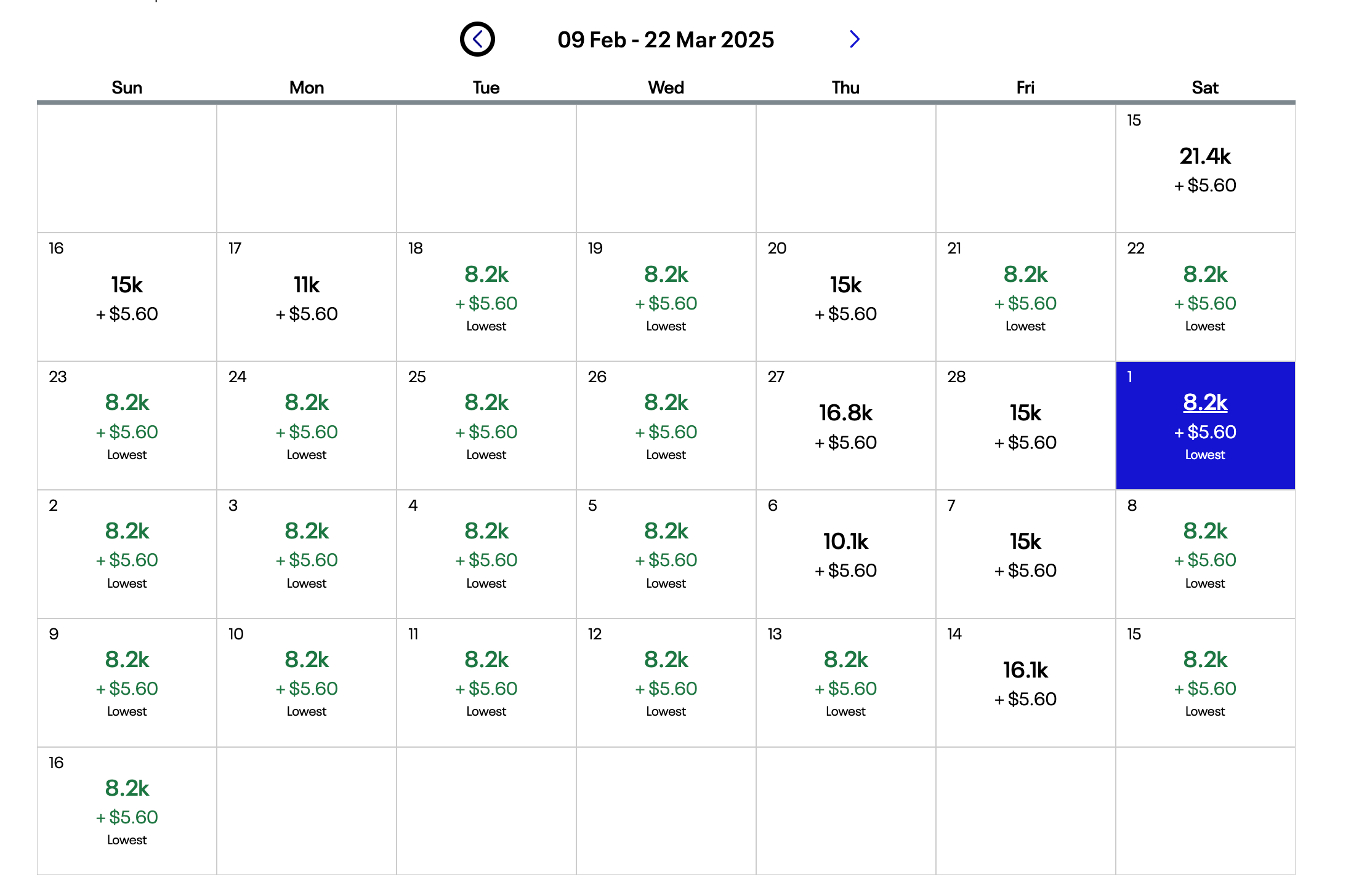 If traveling from the West Coast, specifically Los Angeles International Airport (LAX), United offers round-trip flights from as low as 17,200 MileagePlus miles in March (or from 8,200 miles one-way).