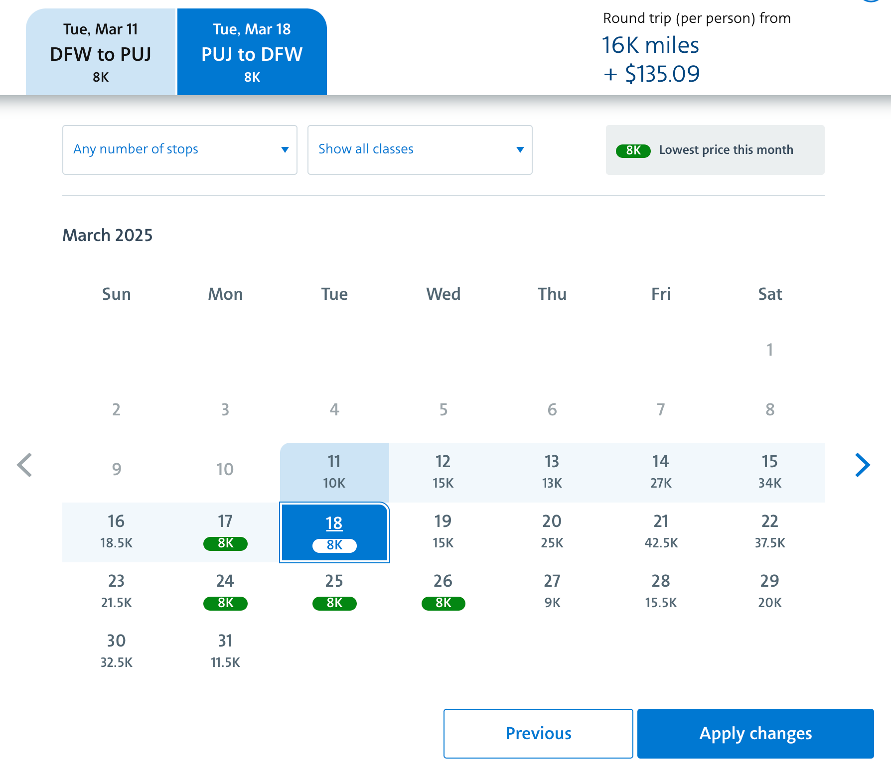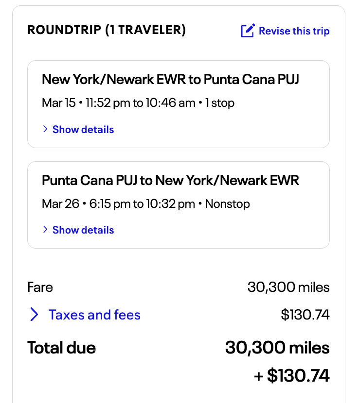 Depending on your preferred travel date, you can fly to Punta Cana International Airport (PUJ) from New York using United MileagePlus miles from around 30,000 miles per person round-trip in March.