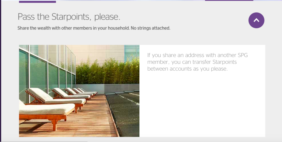 Starwood: You can transfer Starpoints to anyone in your household at no cost using a simple online form. There is no limit to the number of points you can transfer, and no official verification required. A great strategy here is to take advantage of SPG's generous 5,000-mile bonus when you transfer 20,000 Starpoints to one of its airline partners. You can simply combine points with someone in your household to end up on a multiple of 20,000 and claim your 25% bonus. Points transfers can take up to 5 days to process.
