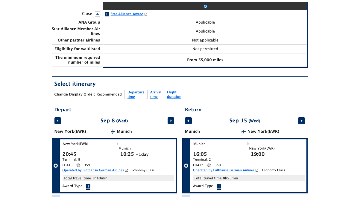 Pros: Fantastic award redemption requirements; decent transfer options; one of the most comprehensive search engines for Star Alliance award availability.