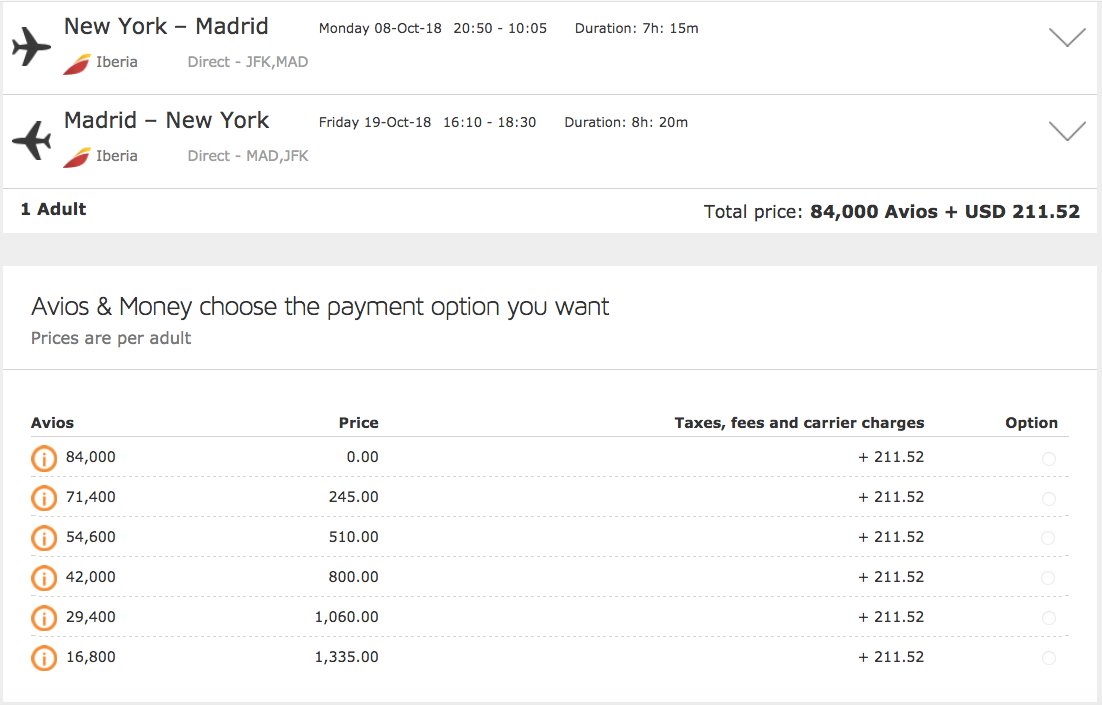Iberia, by comparison, would charge you the same number of Avios and only $211.