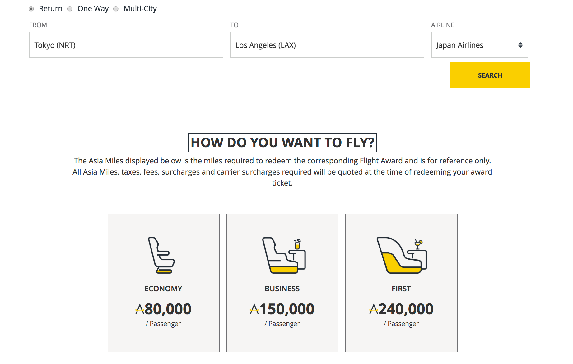 You'll also want to note that the actual booking process for Asia Miles is very convoluted. You can redeem your miles for select carriers online: Cathay Pacific, Cathay Dragon, Alaska Airlines, British Airways, Finnair, Iberia, Qantas and Qatar Airways. For all others, you need to fill out a flight award request form. A member services representative will then confirm the availability and contact you to pay the applicable taxes and fees. However, I have heard reports that the response time can be multiple weeks, at which point award availability may be gone.