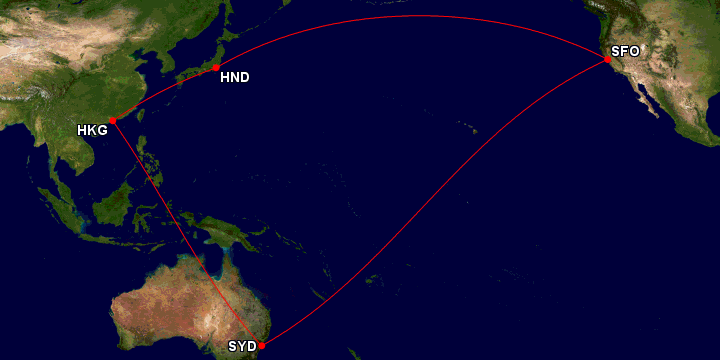 These tickets are more like a round-the-world itinerary, as you must return to your origin city and can only have five stopovers, but you can build some interesting itineraries this way. Flying from San Francisco (SFO) to Tokyo-Haneda on JAL, then on to Hong Kong with Cathay Pacific, then connecting Hong Kong to Sydney (SYD) on Cathay Pacific and returning to San Francisco with Qantas would cover just under 19,000 flight miles. You could book this four-flight extravaganza, including stopovers in Tokyo, Hong Kong and Sydney, for only 130,000 miles in economy or 260,000 in business class. If Qantas is flying its A380 between Hong Kong and Sydney during your trip, you could even do the whole thing in first class for 390,000 miles (though availability might be scarce).