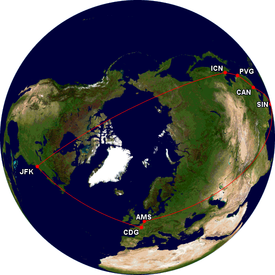 This allows you to create some pretty funky itineraries, including the following with stops in Seoul (ICN), Shanghai, Guangzhou (CAN), Singapore (SIN), Amsterdam and Paris for only 220,000 Membership Rewards points in business class. If you tried to build that same itinerary out by combining individual segments, it could easily cost you five times as many miles.