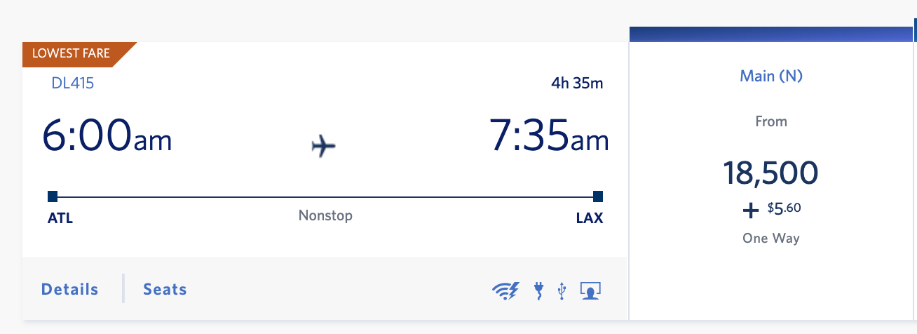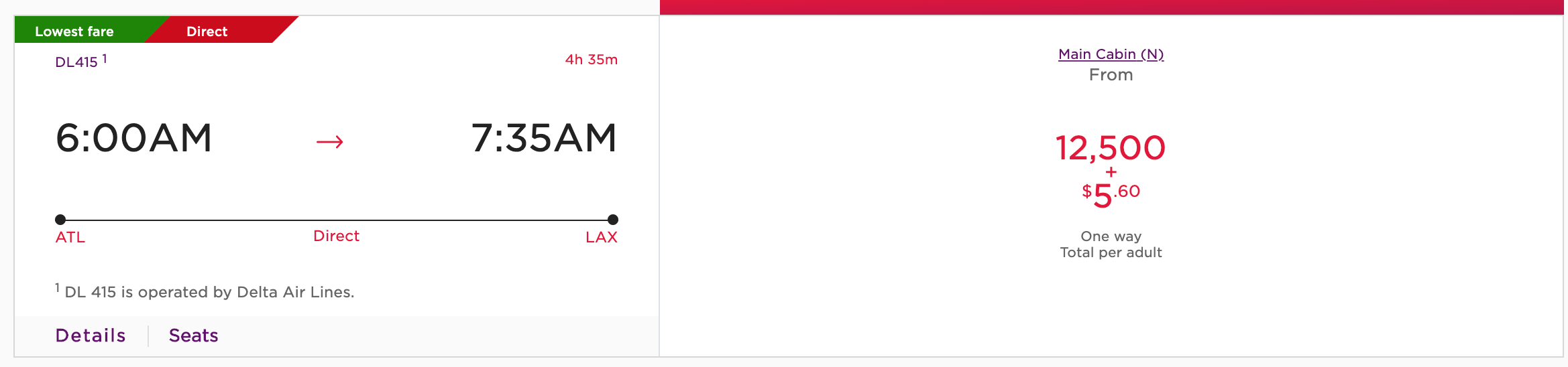 Virgin Atlantic even has an edge on many domestic itineraries, such as this trip from Atlanta to Los Angeles (LAX) in Delta economy: