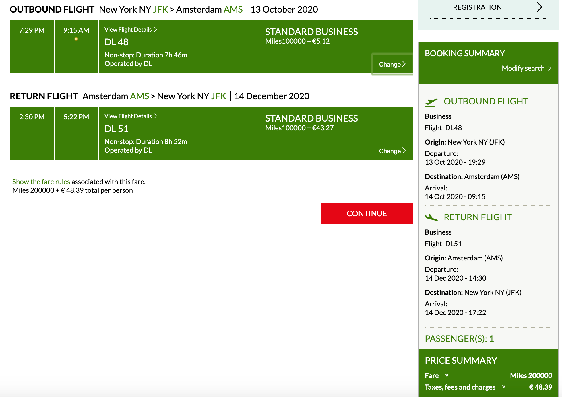 However, when I went to make a test booking from New York-JFK to Amsterdam (AMS) on a nonstop Delta flight in both directions, I was quoted 200,000 miles: