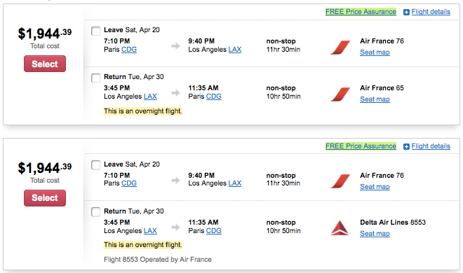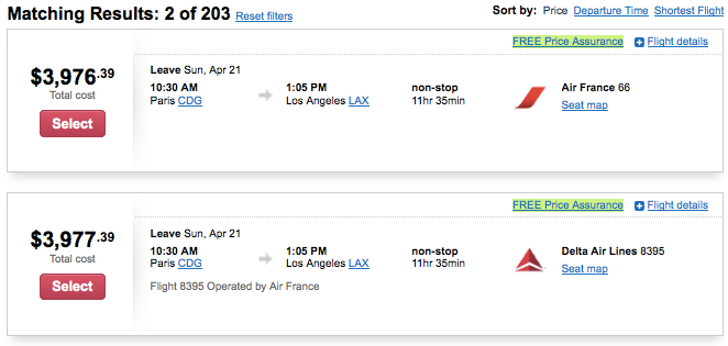 For example, this one-way non-stop from CDG-LAX in April is nearly $4,000!