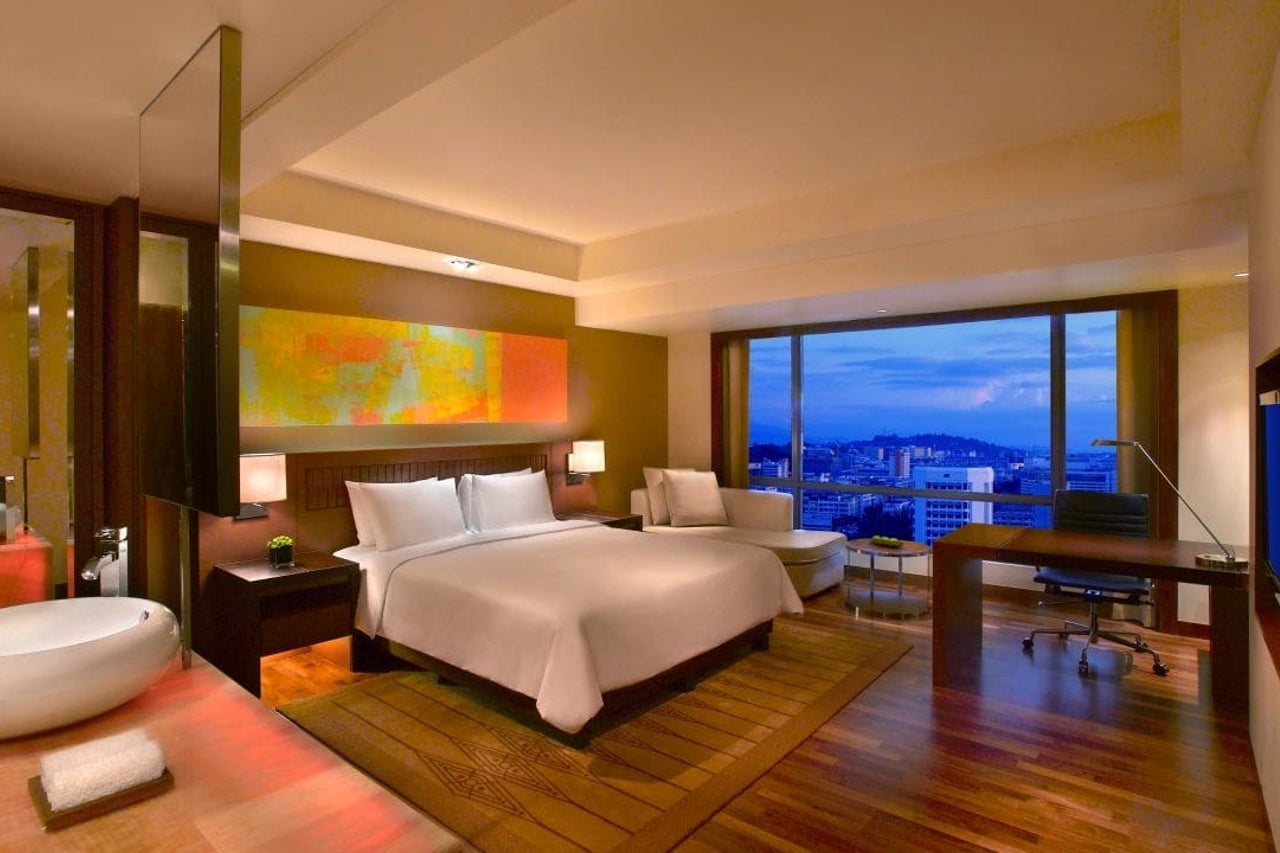 The Hyatt Regency Kinabalu is located in Kota Kinabalu's business, shopping and entertainment district overlooking the coral islands of the Tunku Abdul Rahman Marine Park and the South China Sea. This Hyatt Regency has a spa, pool, fitness center and six restaurants or bars.