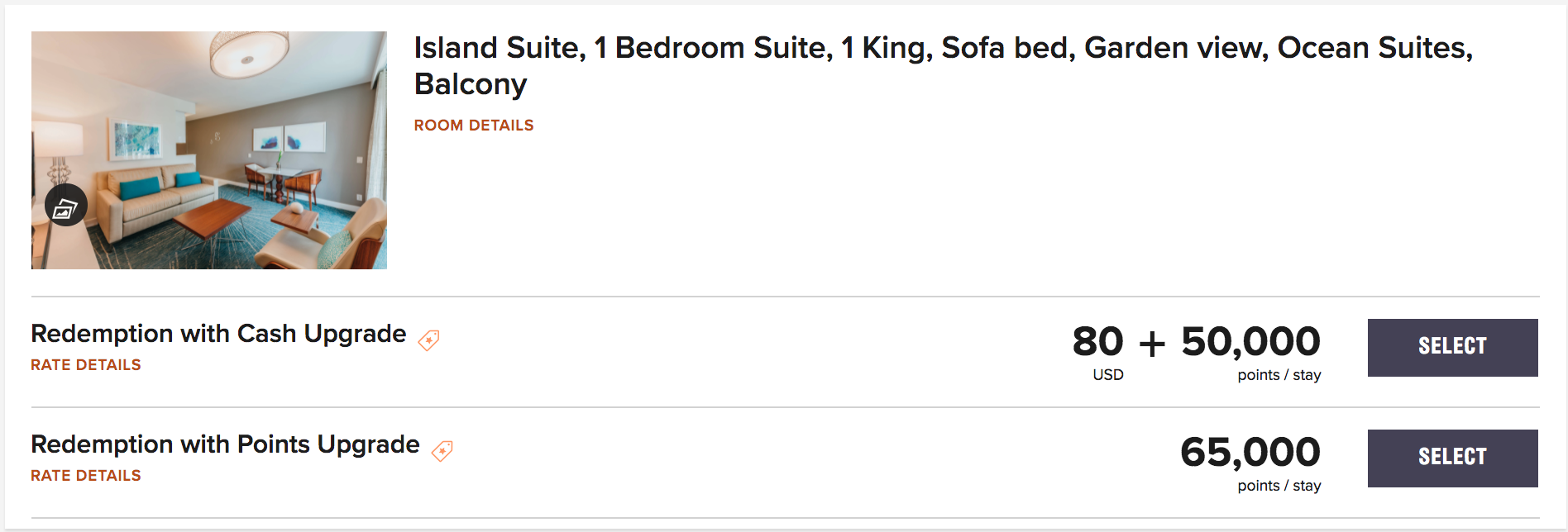 Or look at the Choice Privileges program since you can typically book their best room available -- suites included -- for the same number of points. Wyndham Rewards also charges per bedroom, so if you're staying at a property that offers a one-bedroom suite (common for many of their timeshare properties) it's the same amount of points as a studio room.