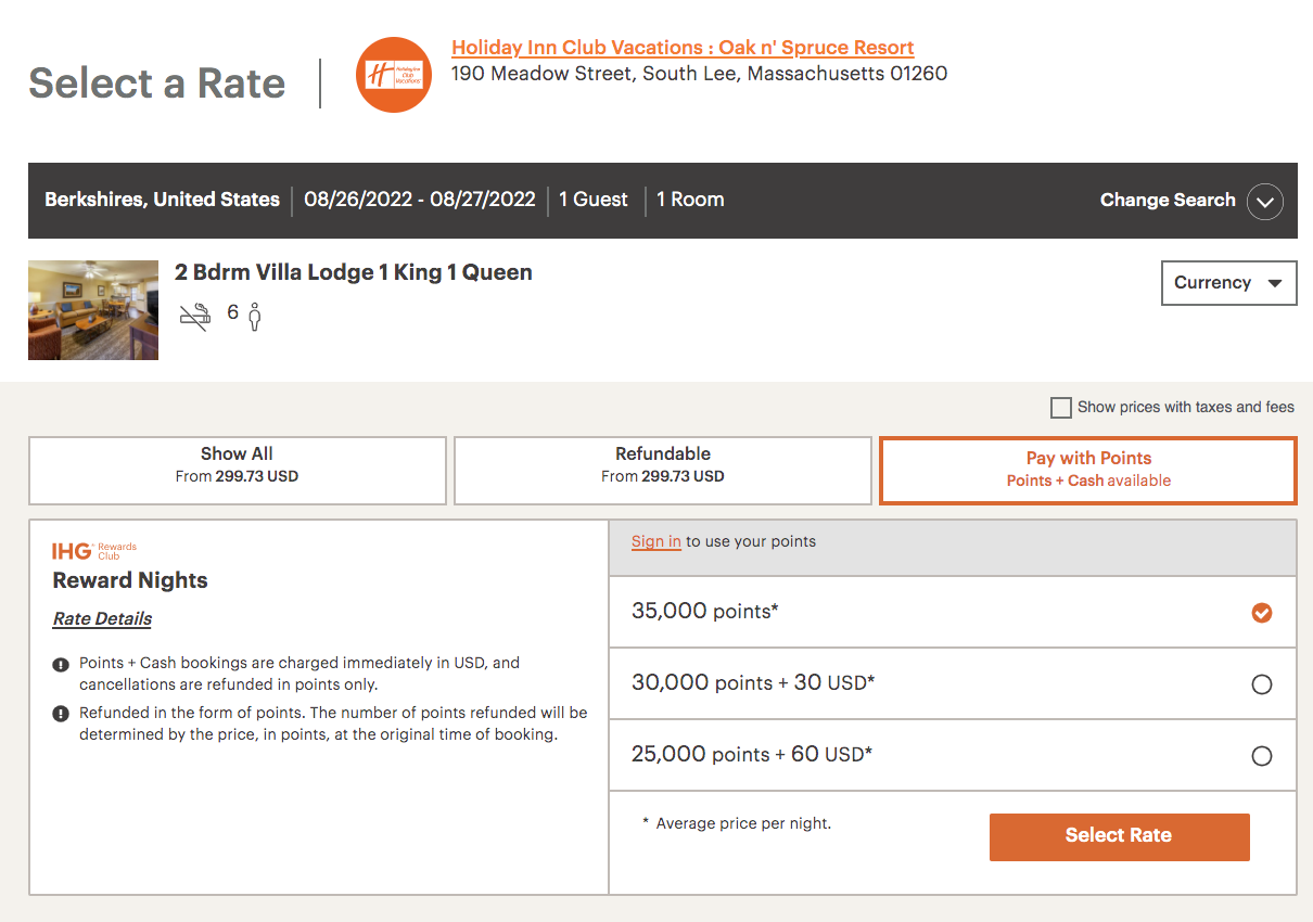 Situated in the Berkshires, the Oak N' Spruce Resort is a great property for those seeking a resort getaway. Best of all, when you redeem your IHG Reward points, you're booked into one of their two-bedroom villas -- even though the property also includes smaller studio rooms and one-bedroom villas. Within the villa, you have a full kitchen, living area (with a pull-out couch) and two separate bedrooms with their own en-suite bathroom. To top it off, the room only costs 35,000 IHG Reward points per night, which is a great redemption value, especially during peak summer months or leaf peeping season. I've personally stayed at this property and found it to be a great use of the IHG free night certificates I receive with the IHG One Rewards Premier Credit Card.