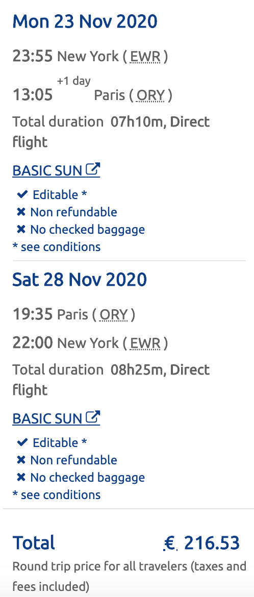 In our recent search for fares to Europe from the U.S., we found a few good cash deals from New York City to Europe. For instance, you could get a flight from Newark (EWR) to Paris (ORY) on French Bee for $240 round-trip, nonstop.