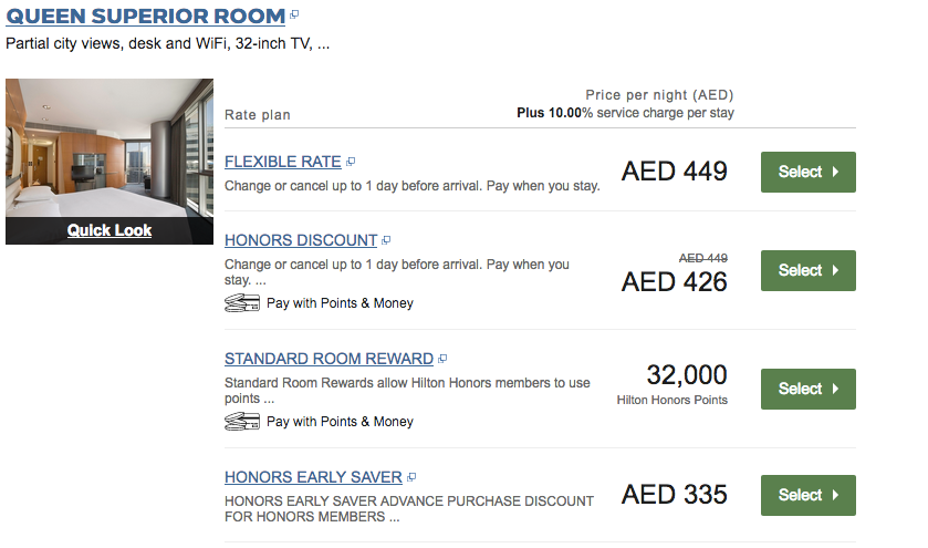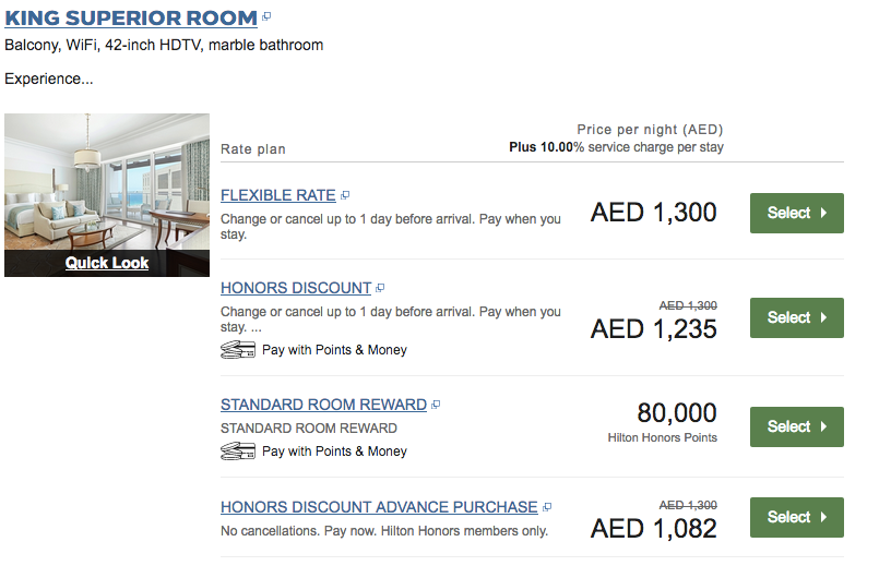 There are several high-end Hilton properties in and around the city. The Waldorf Astoria Dubai Palm Jumeirah has rooms ranging from 58,000 - 80,000 points, and rooms at the Hilton Dubai Jumeirah are available for 46,000 - 70,000 points.