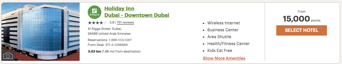 You can transfer Chase Ultimate Rewards to IHG Rewards and spend 15,000 of them on the Holiday Inn Dubai – Downtown Dubai or 20,000 at the Holiday Inn Express Dubai – Jumeirah.