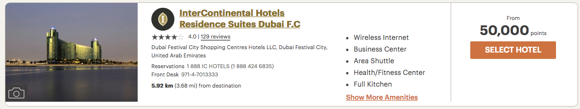 If you have IHG Rewards points, you could spend 50,000 of them per night at the Intercontinental Hotel Residence Suites Dubai F.C. or the Intercontinental Hotel Dubai Marina.