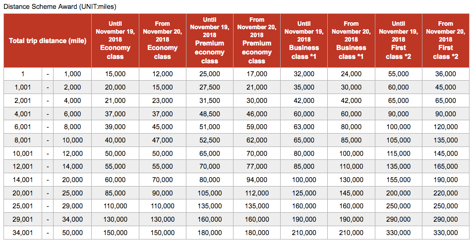 - Los Angeles to Dubai (one-way): 65,000 miles before November 20 and 85,000 miles after