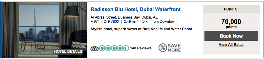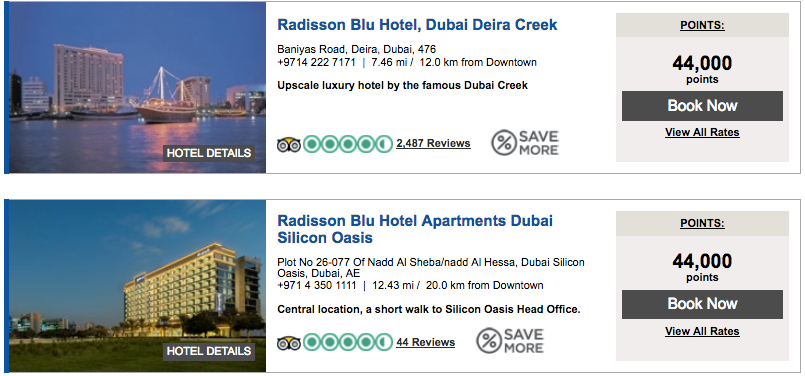 Let's not forget about Radisson Rewards. You can book the Radisson Blu Hotel, Dubai Deira Creek and the Radisson Blu Hotel Apartments Dubai Silicon Oasis for just 44,000 points per night. The Radisson Blu Hotel, Dubai Media City and Radisson Blu Residence Dubai Marina are just slightly more expensive but still reasonable, with nightly award rates of 50,000 points.