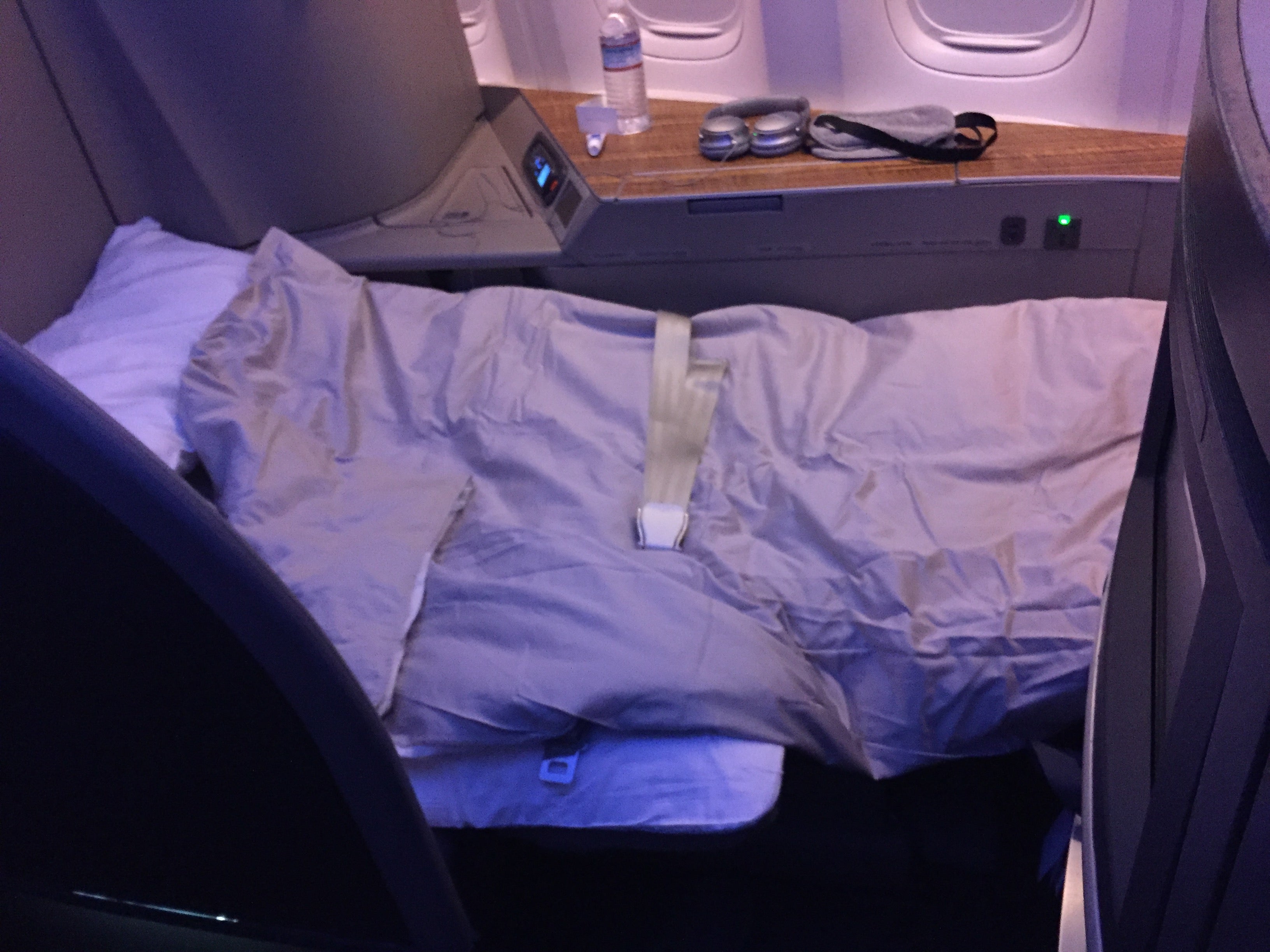 When it's time to sleep, the flight attendants will turn your three-foot-wide seat into one of the plushest beds in the sky, complete with a mattress pad, comforter and several pillows. This was easily the best sleep I've ever gotten on a flight.