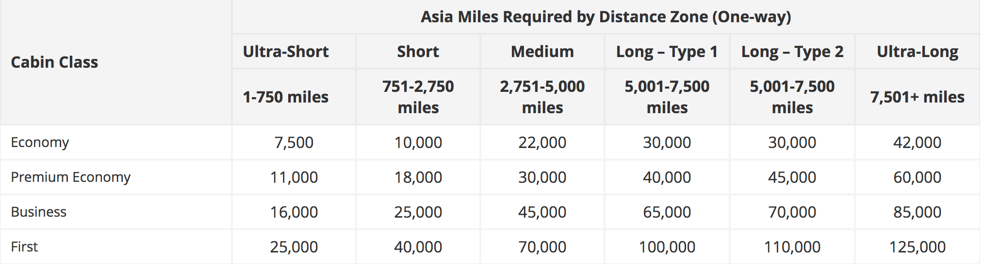 Asia Miles uses a distance-based award chart, which makes things very expensive for U.S.-based travelers: