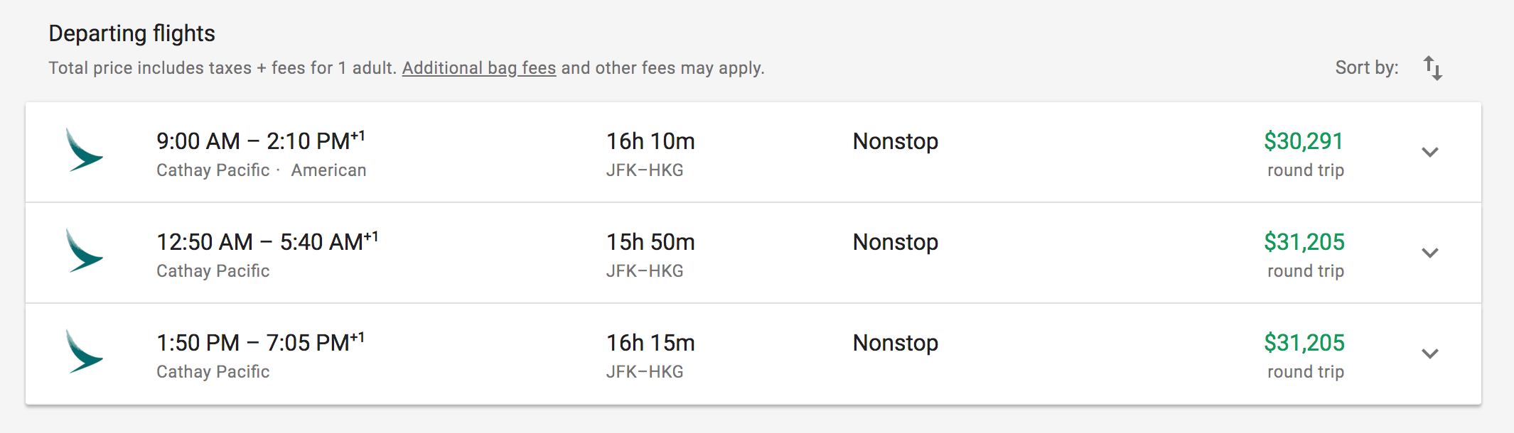 Your next best option is to use the clunky British Airways website to search for space and then call your booking partner of choice with the exact flight number(s) and date(s). If you're trying to travel beyond Hong Kong, you should search segment by segment to get British Airways to show you the space. For example, if you're trying to fly from Chicago to Hong Kong and then connect to Bangkok (BKK), search for the Chicago to Hong Kong leg and do a separate search for Hong Kong to Bangkok. You can also use the Qantas website, which is sometimes better at showing complete itineraries on Cathay. For more details on this search process, be sure to review Richard Kerr's post on the best websites for searching Oneworld alliance availability.