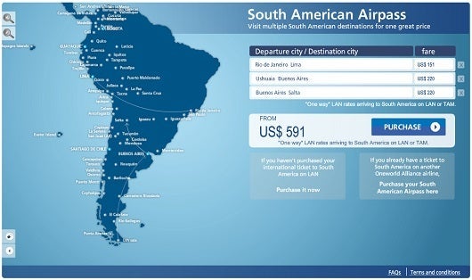 LAN's website allows you to construct, price, and purchase South America pass itineraries if you're traveling there on LAN or TAM.