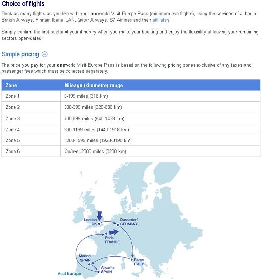 OneWorld tells you clearly how they price air travel passes, which is nice.