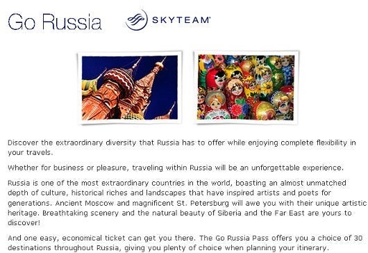 Skyteam offers a Go Russia air travel pass.