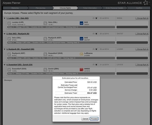 Thankfully, the Star Alliance website includes some fantastic tools to plan and even price an air travel pass, so you can learn and compare the costs before booking. For example, here's an itinerary that I priced out, starting in London and visiting Oslo, Iceland, Dusseldorf, and Zurich for under $1,000.