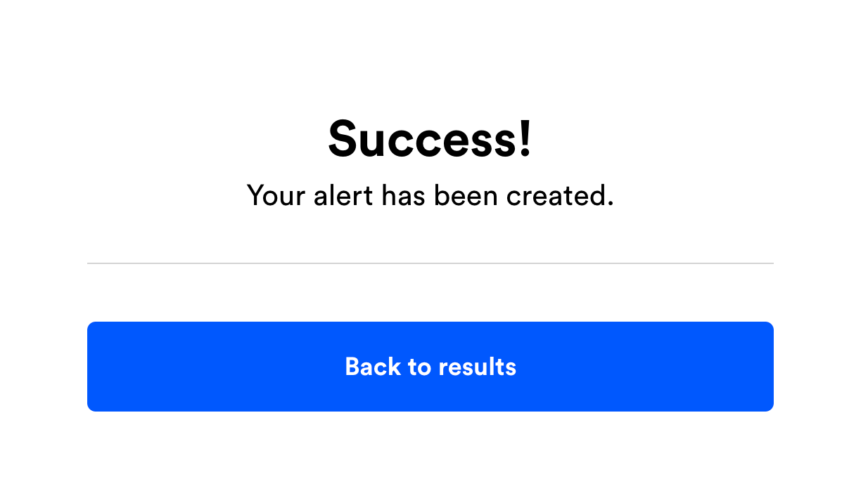 Then, once you click Create my alert, you'll get a confirmation page — and the platform will start searching automatically for your desired seat(s).