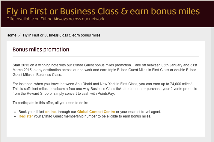 3. Take Advantage of Promos: My wife and I have an upcoming round-trip, first class ticket (via mistake fare) from Tokyo to Abu Dhabi on Etihad. I thought I would obviously want to earn 150% base miles by crediting the flight to American, but then I got an email that Etihad was offering triple miles on first class flights. With Etihad's free pooling option for families, I could potentially end up with a ton of Etihad Guest miles by adding my wife's earnings to my own.