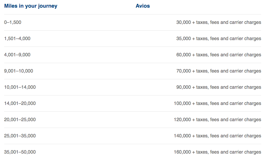 British Airways usually charges journeys per sector when using Avios, but it prices these awards based on total mileage per the above chart. This allows multiple flights to be built into the ticket, and is likely to produce a very beneficial cost, especially if a number of shorter flights are included on the ticket.