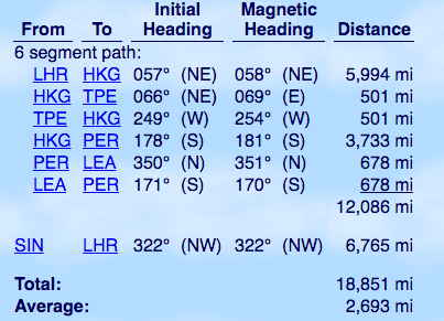 I booked one of these tickets and flew an epic trip last year, making huge savings on both what the cash price would have been (£20,000!) and the Avios cost had I have booked the segments separately. The routing was LHR-HKG-TPE-HKG-PER-LEA-PER overland SIN-LHR with a total mileage of 18,851.