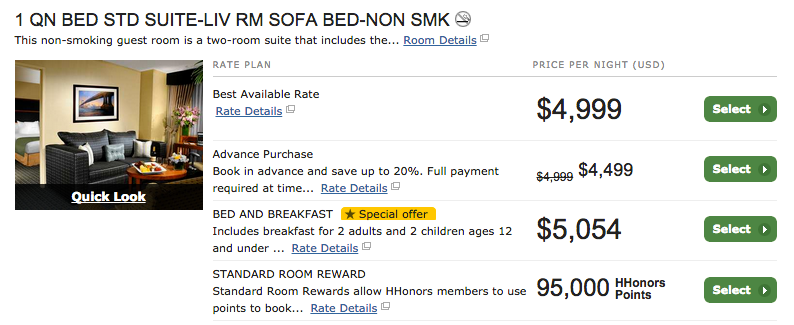 Fortunately, it appears that Hilton HHonors is light years ahead of Club Carlson when it comes to implementing this policy. For an extreme example, the DoubleTree Suites by Hilton Hotel New York City - Times Square is a prime location for New Year's Eve celebrations, and believe it or not, room rates for that night start at a whopping $4,999!