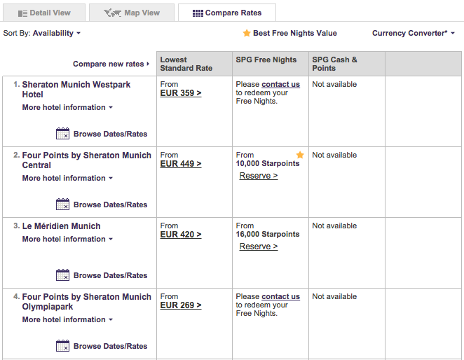 Notice that the Sheraton Munich Westpark Hotel and Four Points by Sheraton Munich Olympiapark do not have standard awards available. However, the paid rates at both properties are for Executive Rooms; Superior Rooms (defined as the standard room for award purposes at both hotels) are sold out.