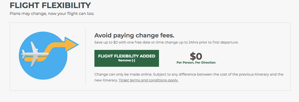And to cap that off, we also got added flight flexibility for no added cost, which will allow us to make one free date or time change up to 24 hours before departure in case our plans change.