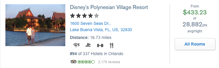 The number of points required per night varied based on the going rate of the hotel and which Ultimate Rewards card you held. To book a deluxe Disney property, such as Disney's Polynesian Village Resort, when it was selling for about $433 per night would cost you around 29,000 points from the Chase Sapphire Reserve at a value of 1.5 cents per point. That will not set the world record for the best points redemption in terms of value per point, but it is still a great option for families who want to use some of their points to go to Disney World.