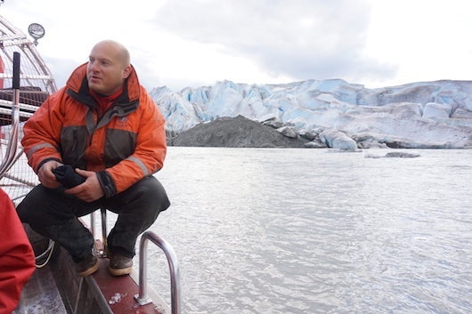 In Juneau, we boarded a Coastal Helicopters chopper and flew to nearby Taku to view the Taku Glacier up close and personal. We landed on a dock in the middle of nowhere, surrounded by lush green mountains, a river and a massive glacier, to meet our guide Brian. He's built a small home into the mountain where he lives a few days out of the week to take people touring. We hopped aboard an airboat that was actually built in Florida and traversed the river's shallow melt water for incredible views of the Taku Glacier.