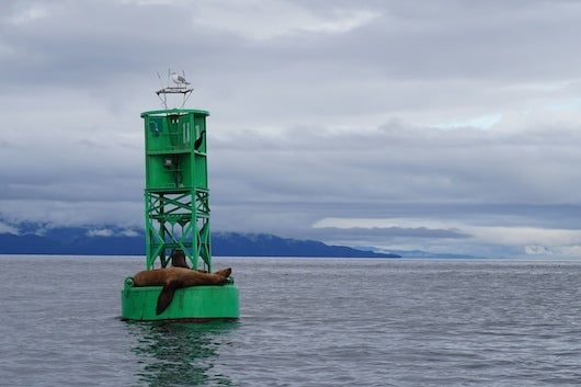 In Hoonah, we set sail with Captain Paul on a small vessel designed specifically for whale watching. It was an exciting and, yes, majestic experience. We saw these graceful creatures crest and dive and blow water into the air, and we learned about their migratory feeding and breeding habits. We also saw lazy sea lions snoozing on channel markers, playful sea otters, seals and even a rare brown bear sighting on the beach.