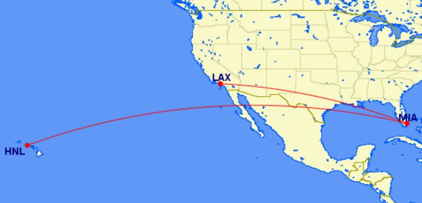 Say you're based in Miami (MIA) and want to head to Hawaii for vacation. After your initial trip, you can add on a free flight from MIA to anywhere in the US for free. Why not utilize your free one-way to get a free transcontinental flight to Los Angeles (LAX)?
