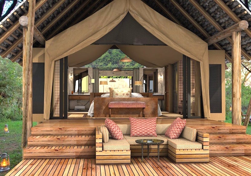 The refurbishment and reopening will be staggered over six months, with the north section of the camp closing from Nov. 1 to March 7 and the south camp closing from Jan. 7 to June 8. The guest tents will be expanded to 1,044 square feet each of indoor and outdoor space with refurbished interiors, verandas with built-in daybeds for leisurely wildlife watching and en-suite bathrooms with private stone courtyards and both indoor and outdoor showers.