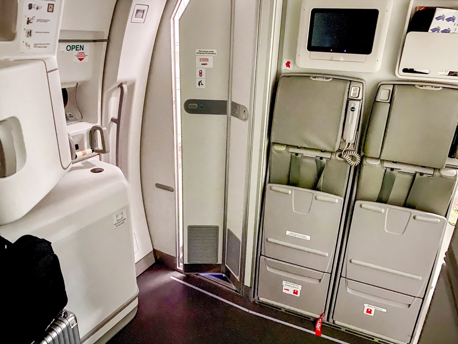 My legs were definitely feeling swollen after sitting for over nine hours, so I headed to the back galley behind premium economy and did some stretches.