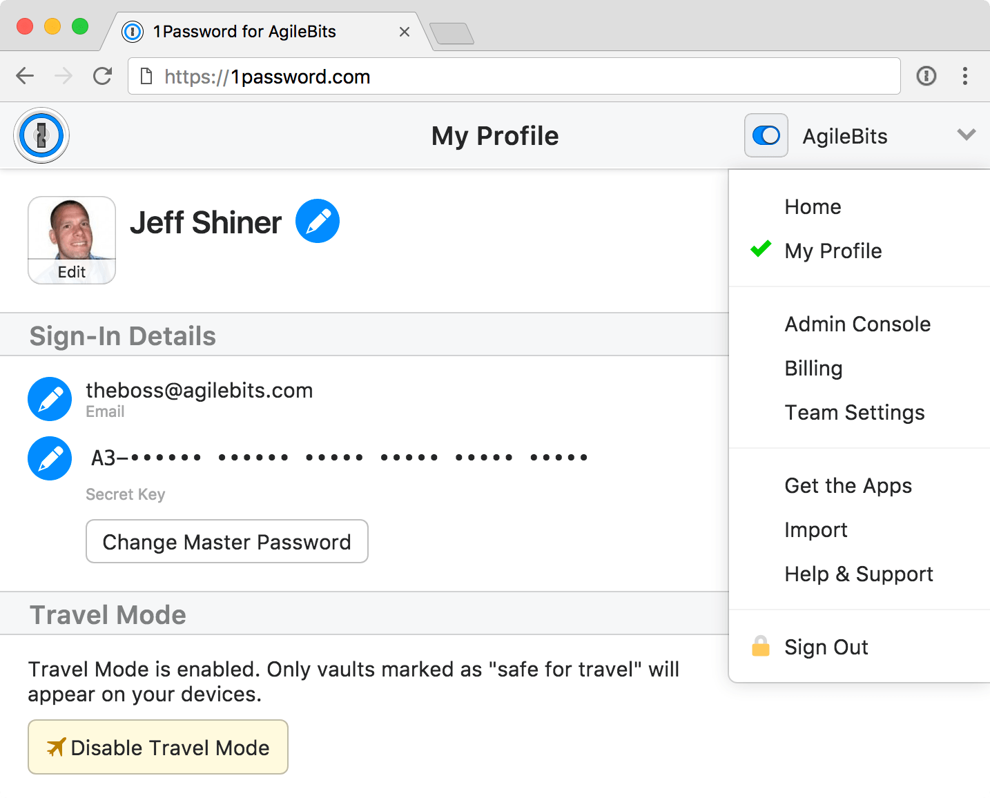 1Password provides this screenshot of how to set the new Travel Mode option.