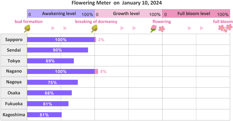 Travelers can also find real-time flowering updates for their intended viewing location using the agency's Flowering Meter, which shows the percentage progress by city toward full bloom.