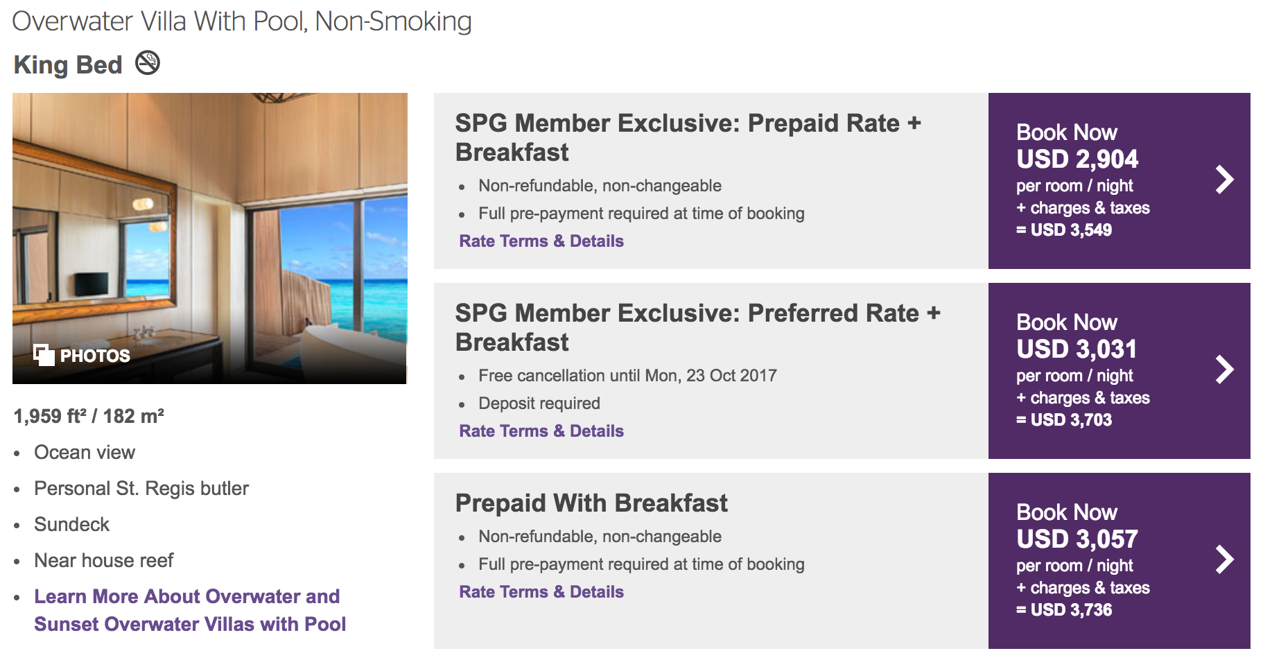 - The St. Regis Maldives Vommuli Resort — normally 90,000 Starpoints per night; now 58,500