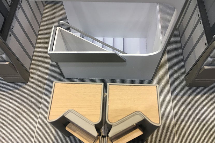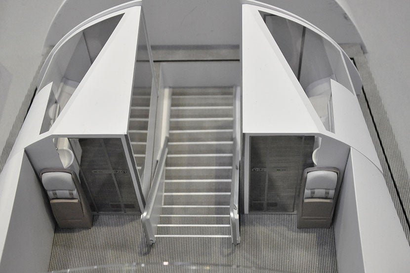 The new Airbus A380 forward staircase, as seen at the Aircraft Interiors Expo.